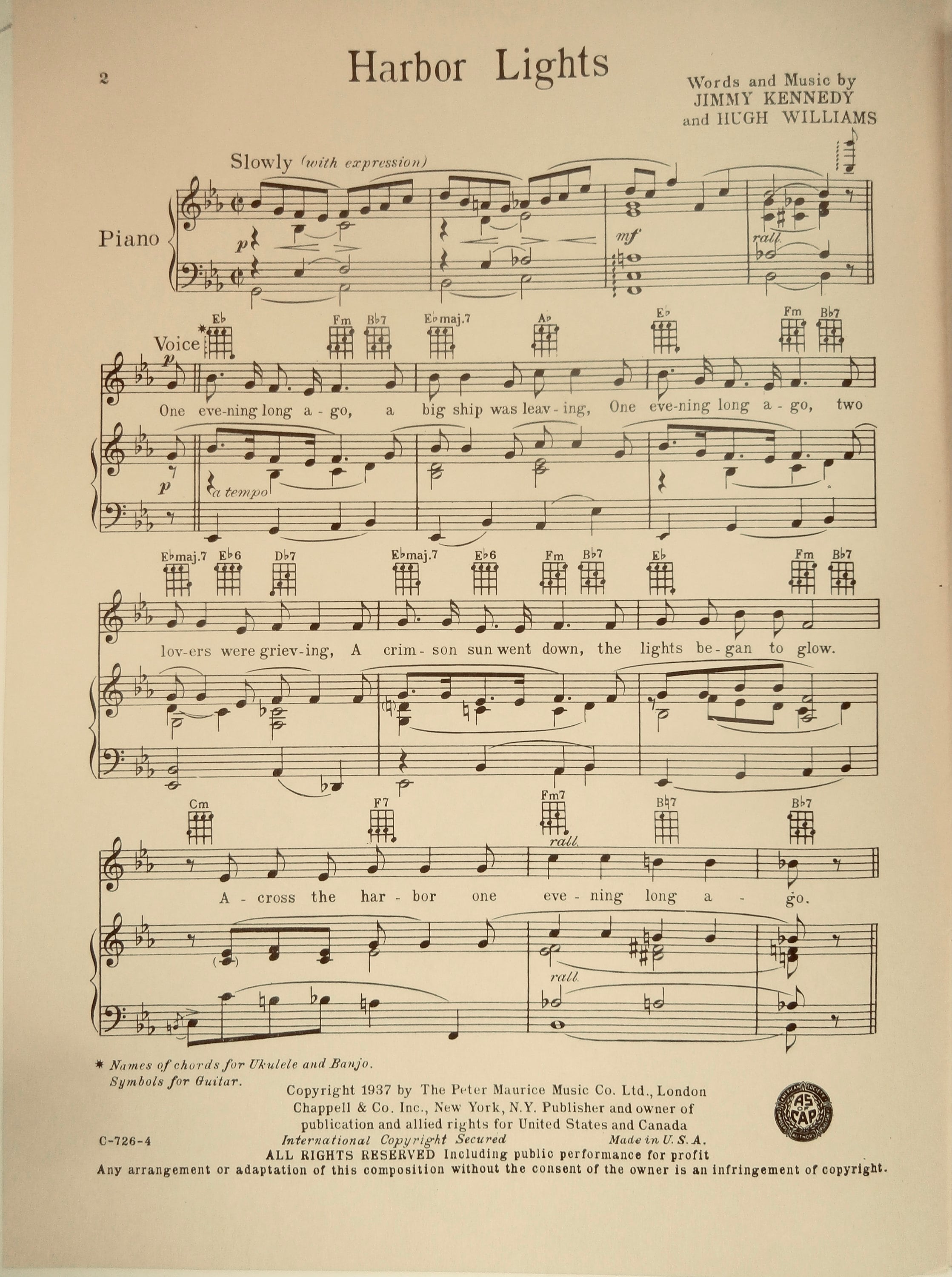 Harbor Lights 1937 Jimmy Kennedy Hugh Williams Sheet Music