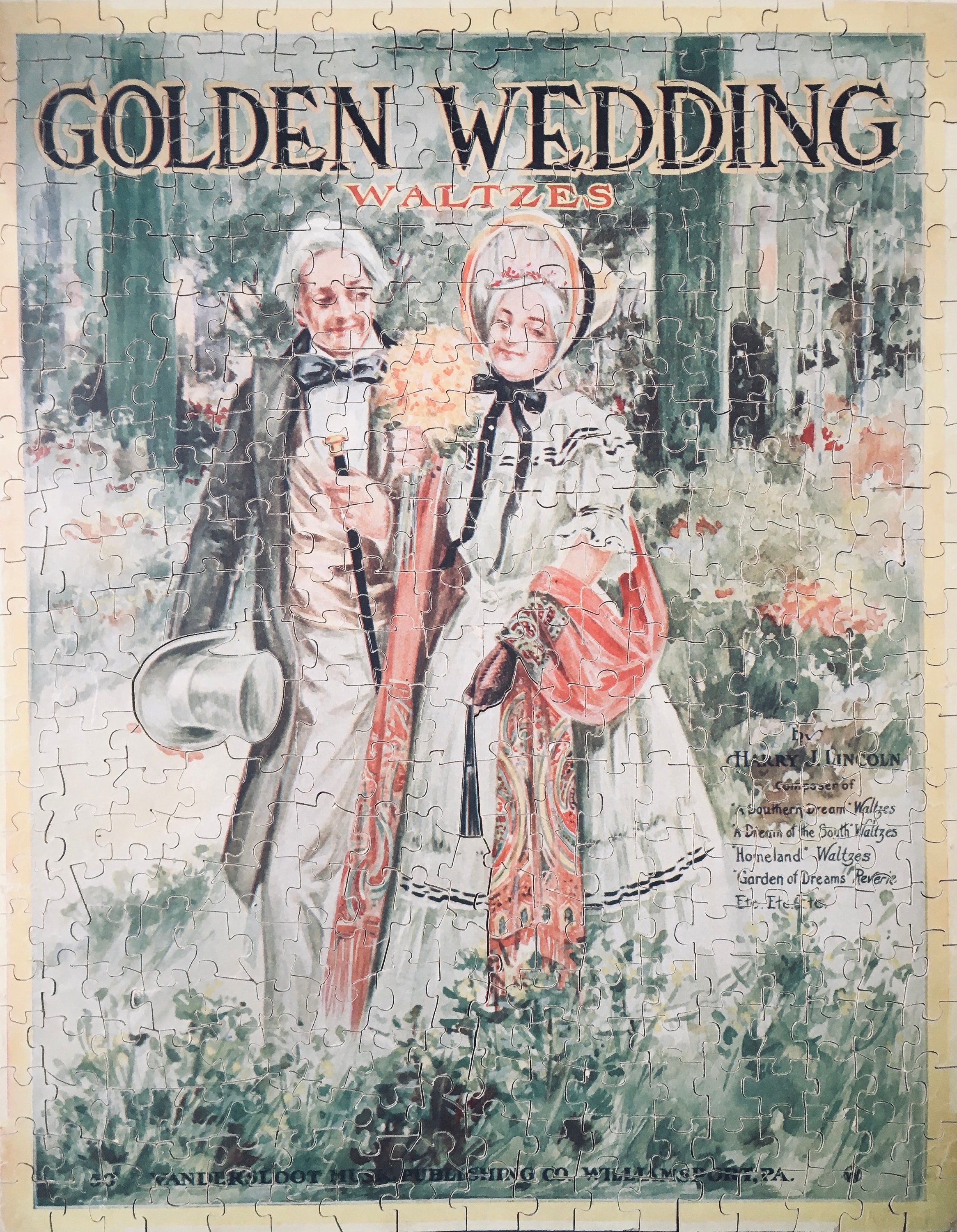 GOLDEN WEDDING Original Handmade Adult Jigsaw Puzzle from Vintage Sheet Music.