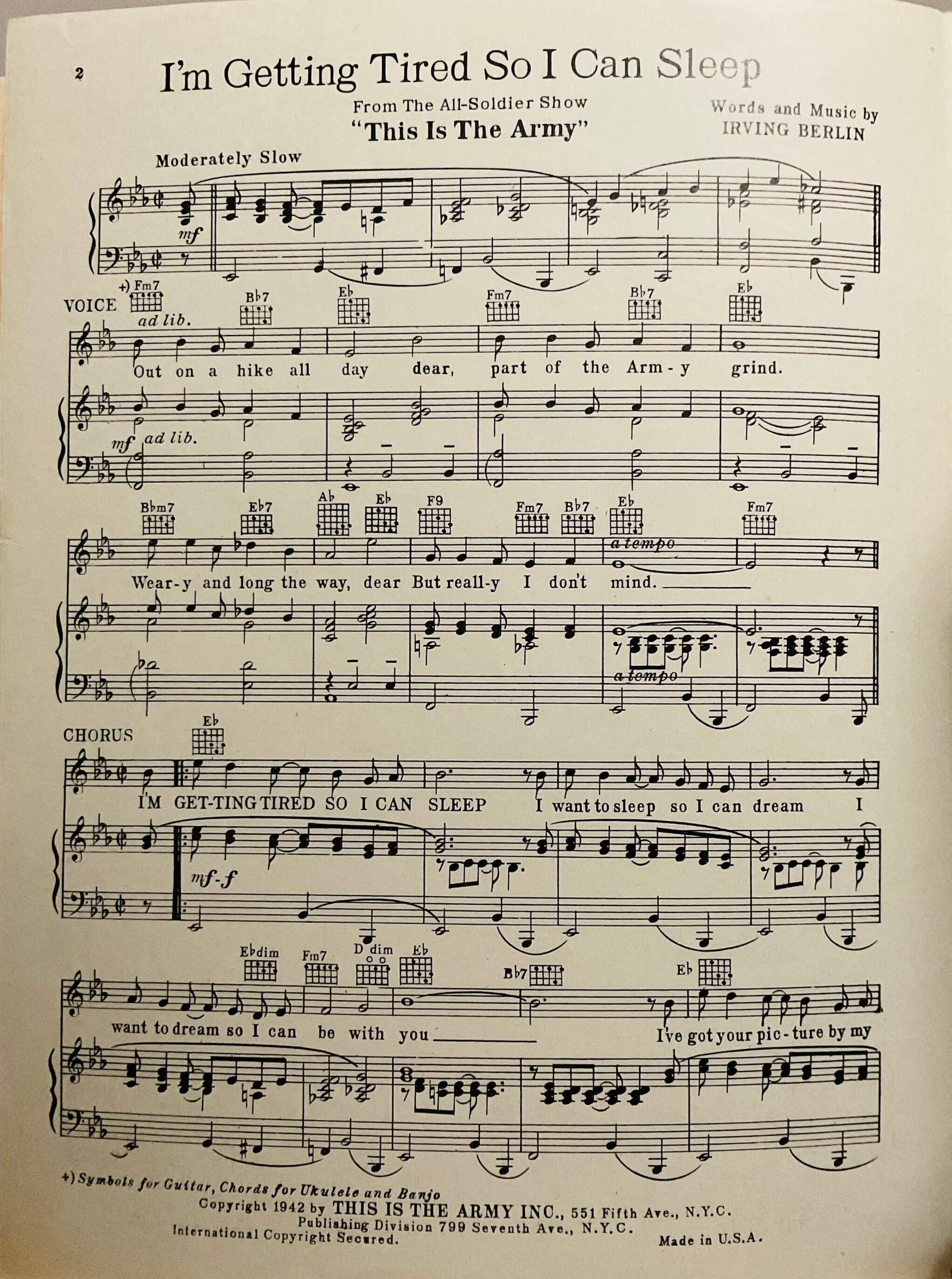 I'm Getting Tired So I Can Sleep 1942 This Is The Army Irving Berlin Sheet Music