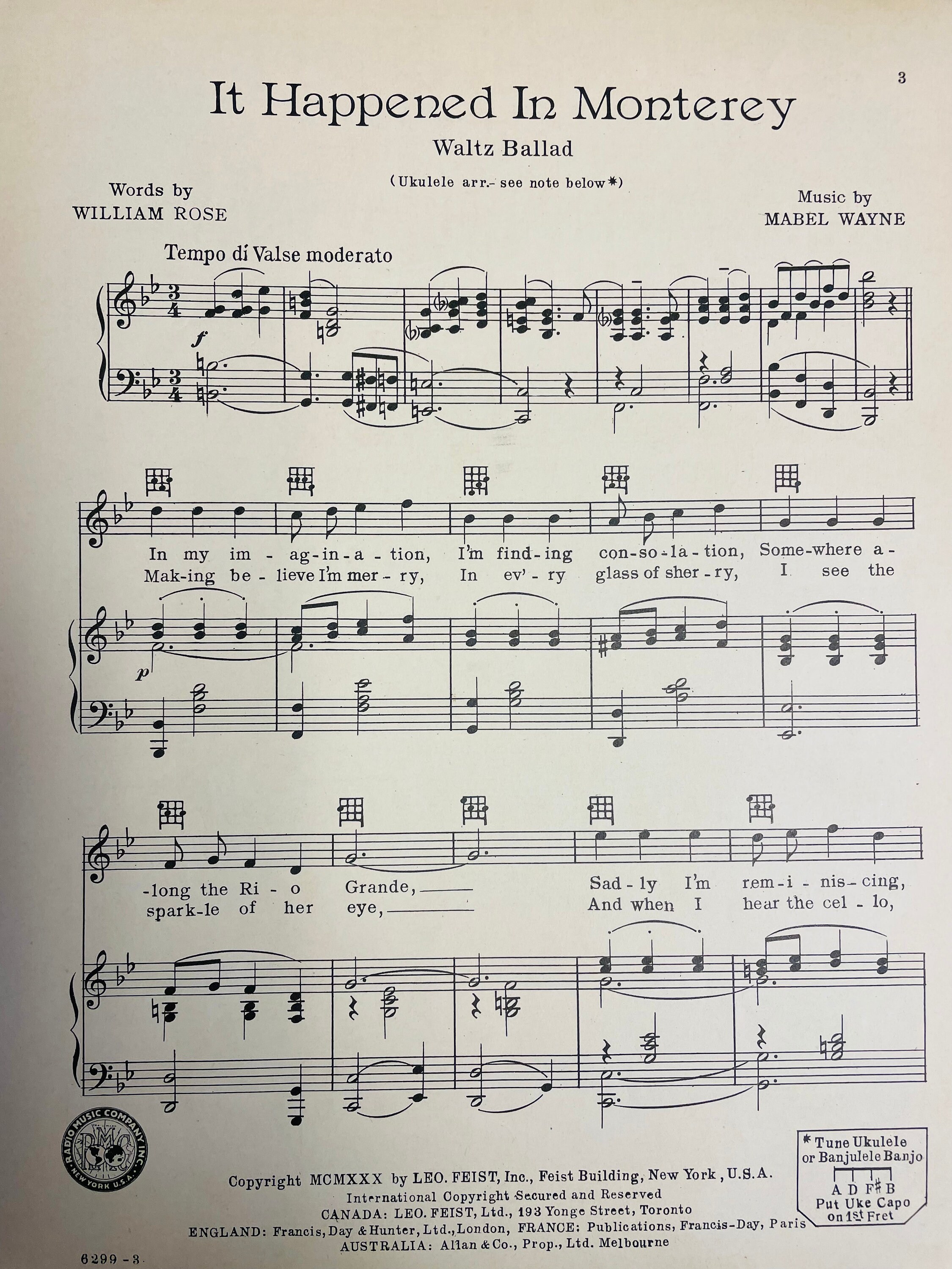 It Happened In Monterey 1930 Movie - King Of Jazz Billy Rose Mabel Wayne Sheet Music
