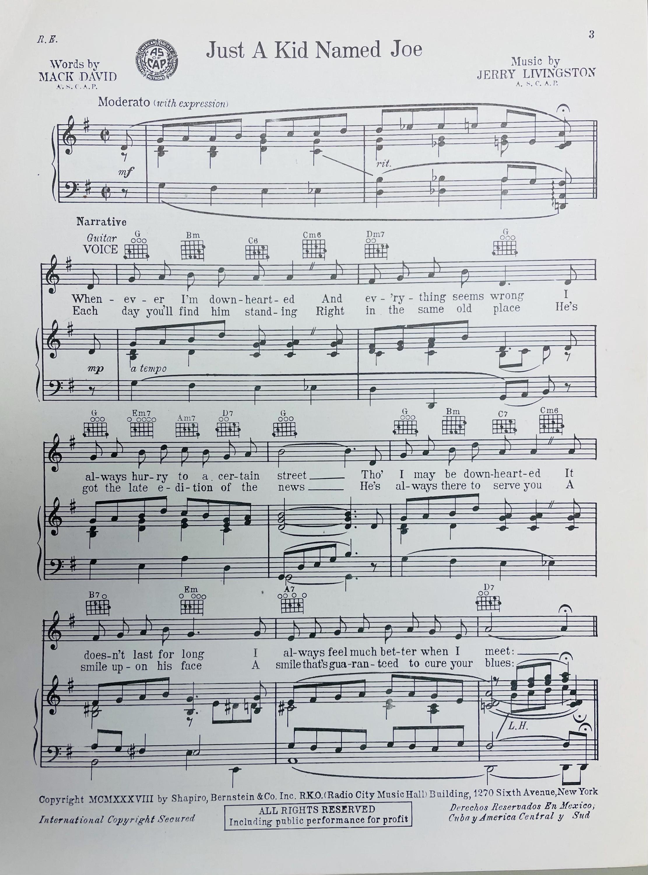 Just A Kid Named Joe 1938 Artwork - Photo - Doris Rhodes Mack David Jerry Livingston Sheet Music