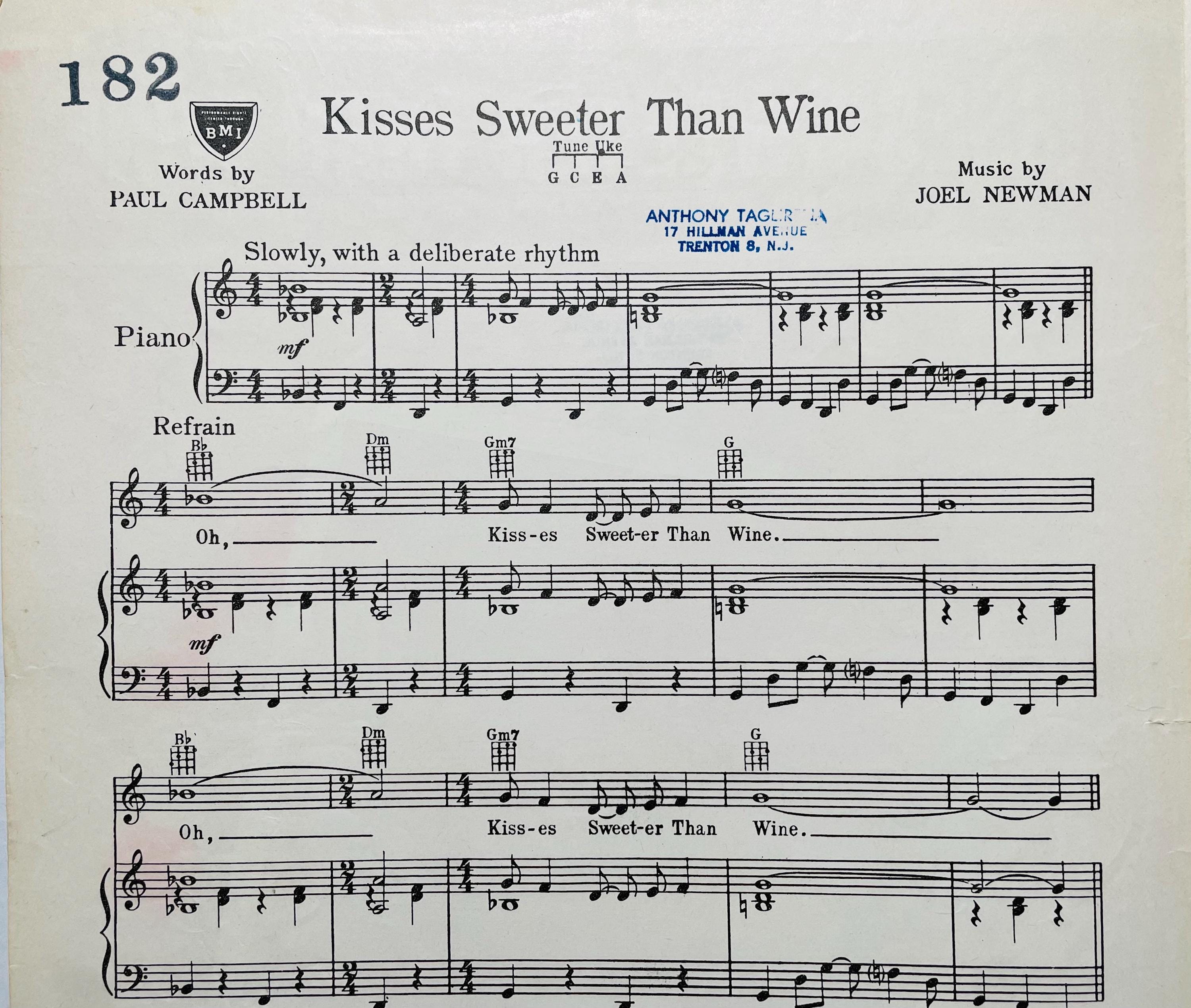 Kisses Sweeter Than Wine 1951 Photo - Jimmie Rogers Paul Campbell Joel Newman Sheet Music